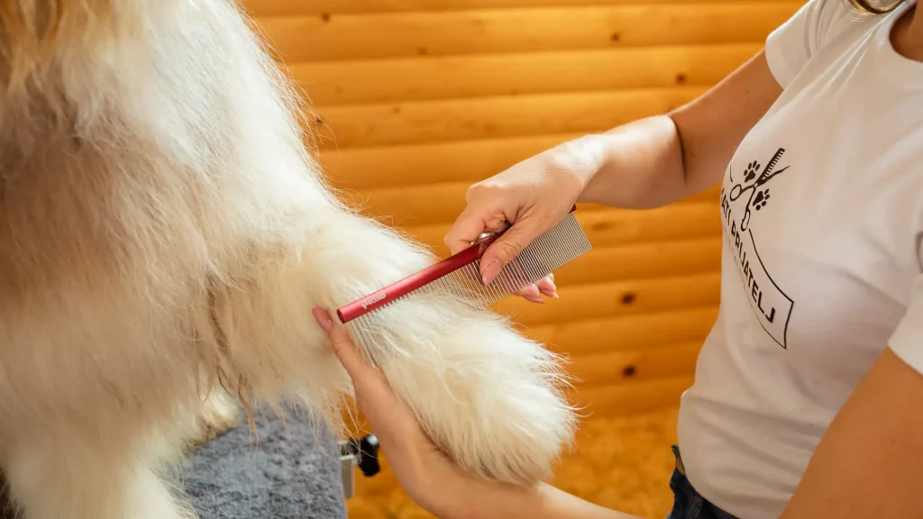 Redno česanje je zelo pomembno. S česanjem odstranimo umazanijo in s tem preprečimo nastajanje vozlov. Razčesavanje in krtačenje opravimo na prijeten način s profesionalno opremo, prilagojeno vrsti dlake. Izbira krtače je odvisna od strukture, kvalitete in dolžine dlake. V salonu pse razčešemo s posebnimi pripomočki in opravimo tudi z najzahtevnejšimi vozli, ki omogočajo hitro razvozlavanje, predvsem pa psu ne povzročajo večjih neprijetnosti.